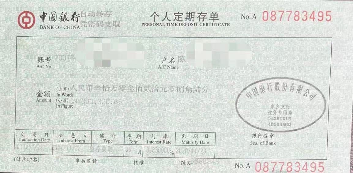 親愛的陳爺爺疼愛長孫…偷偷地幫他存了定存 ,百年後長孫委託提現。