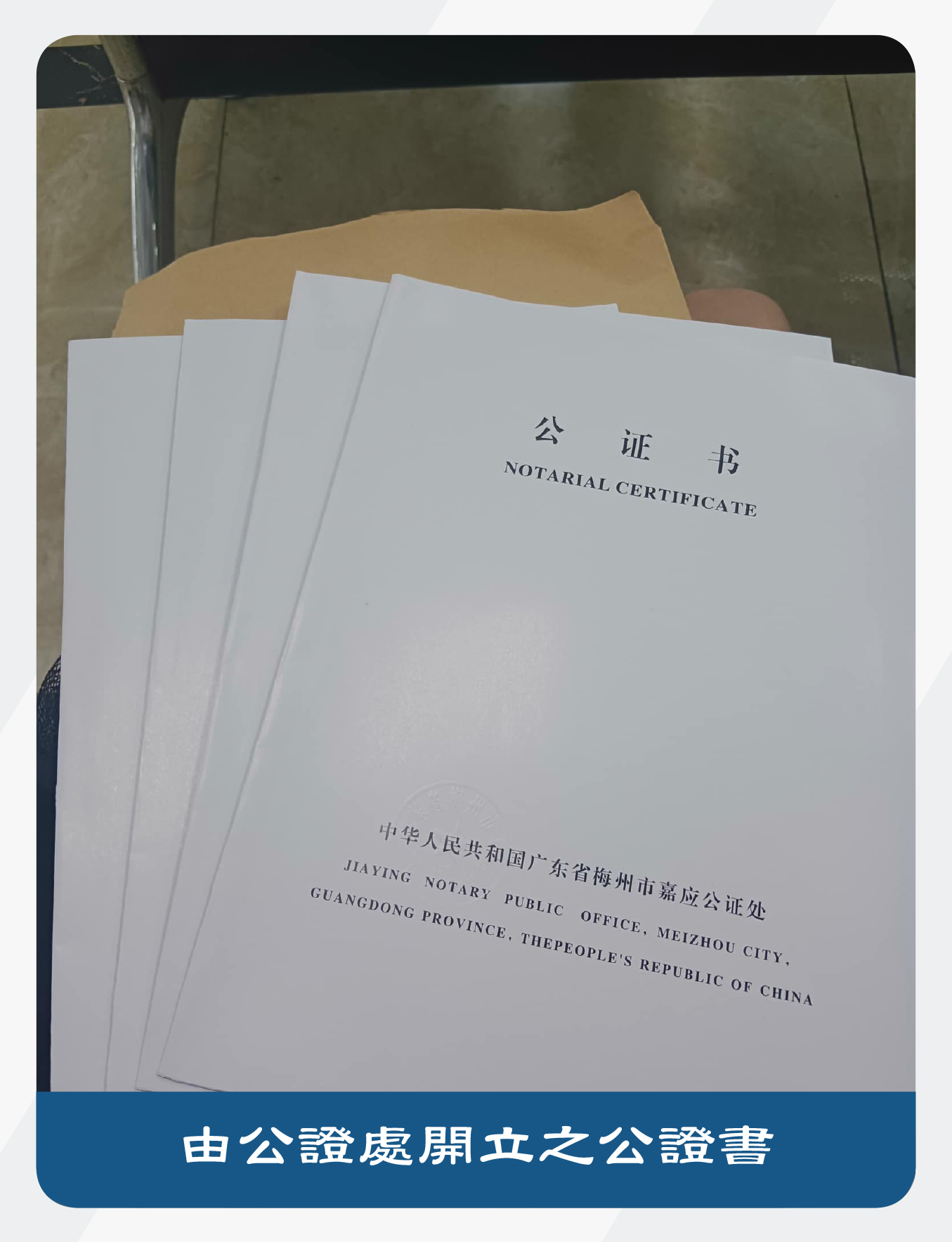 本案件委託人之房產位置為廣東省梅州市梅縣,此案件較為單純,母親過世,由繼承人丈夫及第一順位繼承子女共同繼承。